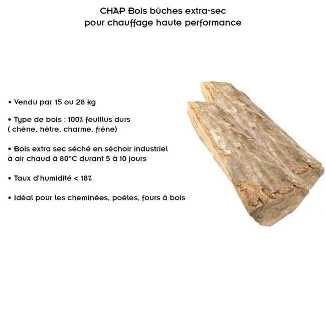 CHAP Bois bûches extra-sec pour chauffage haute performance 50 cm 28 kg